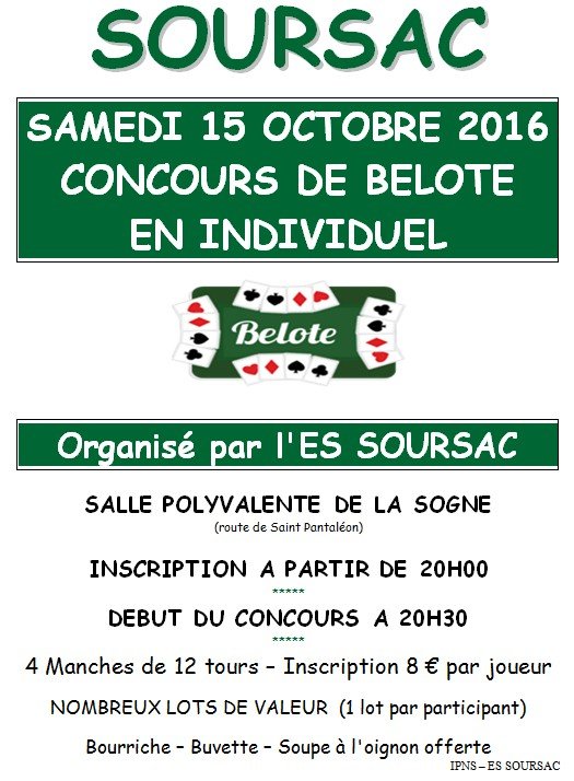 - 25 mars - 20 h 00 Belote du foot ES Soursac (voir affiche)
